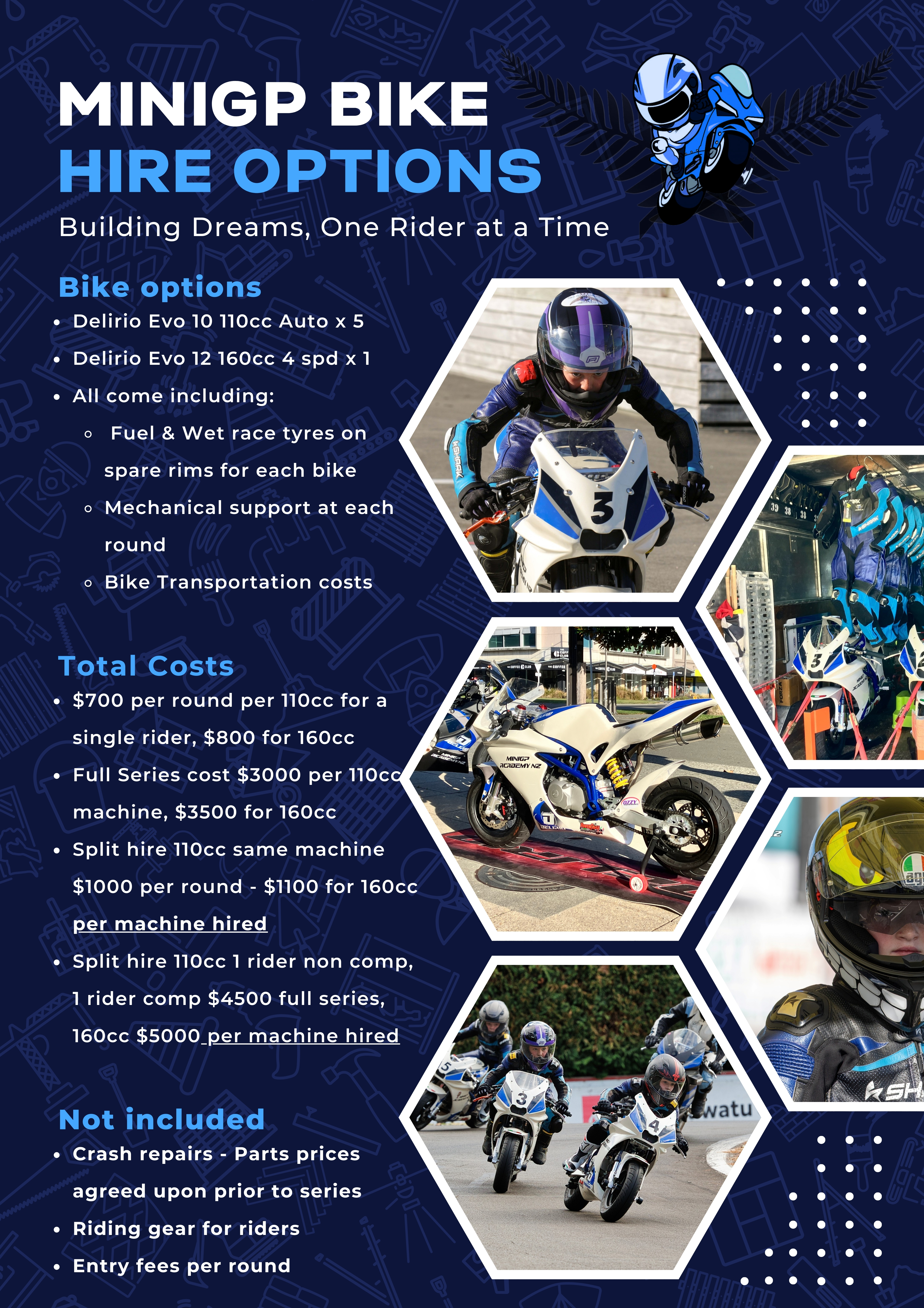 MiniGP Academy NZ has bike hire packages available including transportation and mechanical support!